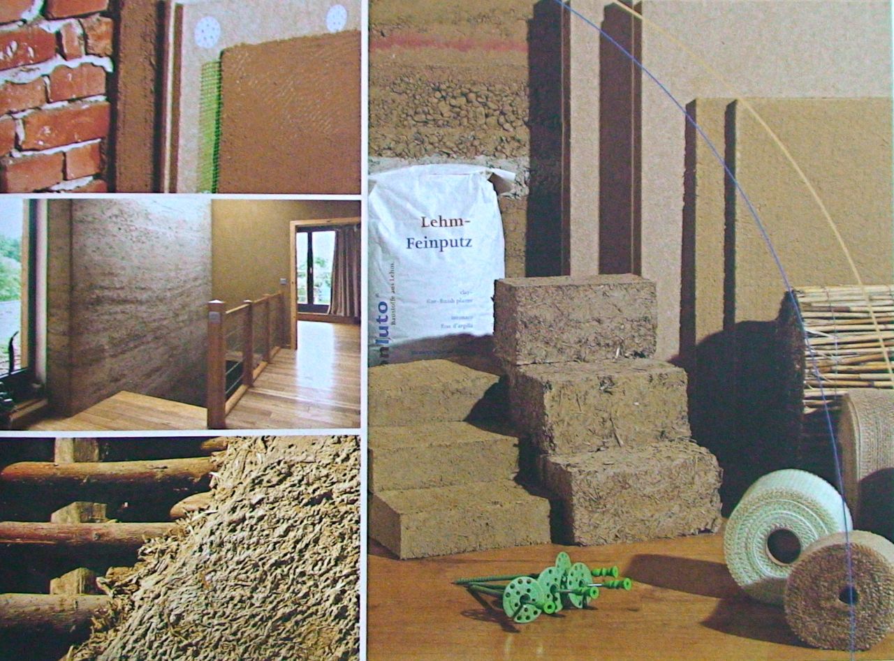 Dieses Photo zeigt eine Übersicht über die hier erläuterten vielfältigen Produkte und Möglichkeiten, mit Naturbaustoffen zu bauen und zu sanieren. Alles 100 % ökologisch. Diese Baustoffe ermöglichen Ihnen ein Leben in angenehmer und allergiereduzierter Umgebung. Das Raumklima Ihres Hauses verändert sich merklich zum Positiven.